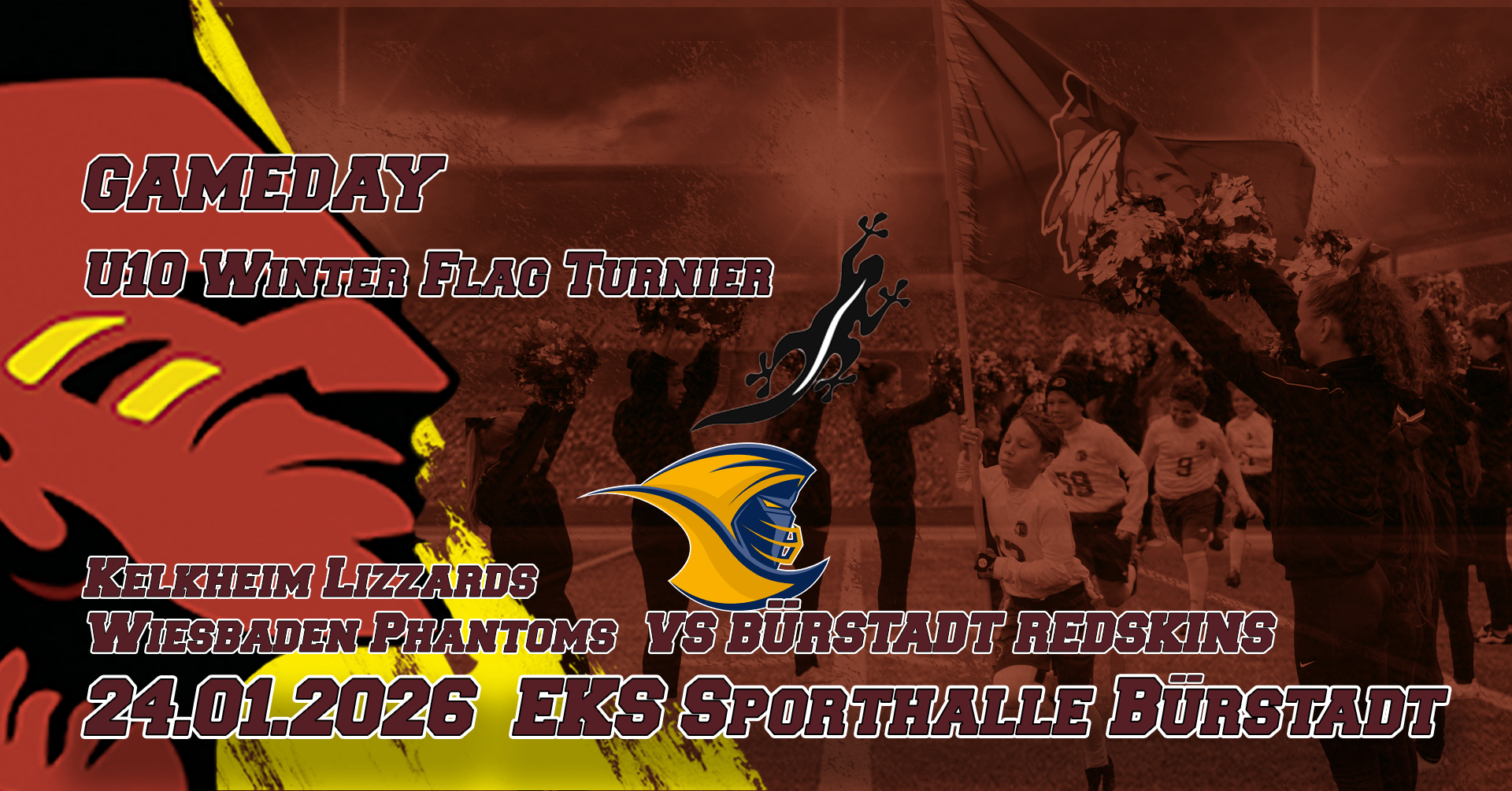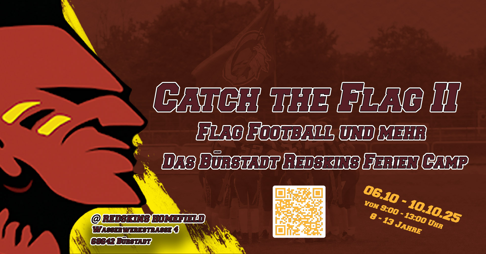 "SAVE THE DATE" heißt: Ihr seid eingeladen. Zu Spielen, Events und Trainings - bei uns - den Redskins. Erlebt den Spirit aus Zusammenhalt, Respekt, Toleranz und Treue. Immer im Fokus dabei, Freundschaft und Familie. Live auf unserem Homefield in Bürstadt. Seid dabei wenn unsere Offence den nächsten Touchdown erzielt, die Flyer unserer Cheerleader schon fast den Himmel greifen und unsere Juniors den nächsten Titel holen. All das gibt es bei uns, den Bürstadt Redskins.